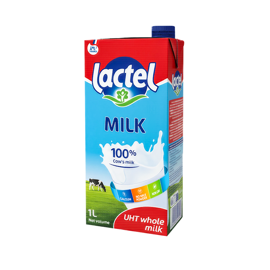 SỮA TUYỆT TRÙNG NGUYÊN CHẤT LACTEL 1L - THƯƠNG HIỆU PHÁP, SX SLOVENIA | LACTEL UHT WHOLE MILK 1L 100% Sữa Bò Nguyên Chất – Vị Thơm Béo Tự Nhiên – Nhập Khẩu Châu Âu – Dễ Dàng Pha Chế & Nấu Ăn   Giới Thiệu Sản Phẩm Sữa Tiệt Trùng Nguyên Chất Lactel 1L là sản phẩm nổi bật của thương hiệu Lactel danh tiếng đến từ Pháp, được sản xuất tại Slovenia theo tiêu chuẩn an toàn thực phẩm châu Âu. Với thành phần 100% sữa bò nguyên chất cùng công nghệ tiệt trùng UHT hiện đại, sản phẩm giữ trọn dưỡng chất tự nhiên và vị sữa thơm béo đặc trưng       Lý do nên chọn Sữa Tiệt Trùng Nguyên Chất Lactel 1L 100% sữa bò nguyên chất Công nghệ tiệt trùng UHT, giữ trọn dưỡng chất và hương vị tự nhiên Linh hoạt sử dụng: uống trực tiếp hoặc làm nguyên liệu pha chế cà phê, cacao, trà sữa, sinh tố, nấu súp kem, sốt mì Ý, bánh ngọt... Vị thơm béo, ngọt dịu tự nhiên, phù hợp cả người lớn lẫn trẻ nhỏ trên 3 tháng tuổi Nhập khẩu trực tiếp từ châu Âu (Slovenia), an toàn, chất lượng   Thông Tin Sản Phẩm