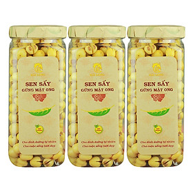 Mua tại Tiktok- Combo 3 Hũ Sen Sấy Gừng Mật Ong Hải Long (230g / Hũ) với thành phần hạt sen nguyên chất, có sự kết hợp với gừng và mật ong, được bóc tách vỏ cẩn thận nhưng vẫn đảm bảo độ giòn, ngọt pha chút bùi bùi rất riêng của loại hạt giàu dinh dưỡng này.