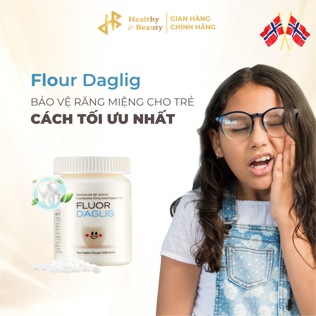 FLUOR DAGLIG 1. THÔNG TIN SẢN PHẨM Thương hiệu: Pharmatech Xuất xứ: Na Uy Quy cách: Lọ 90 viên (Khối lượng viên: 300mg/viên ±10%) 2. THÀNH PHẦN CHÍNH Mỗi 01 viên Fluor Daglig chứa:
