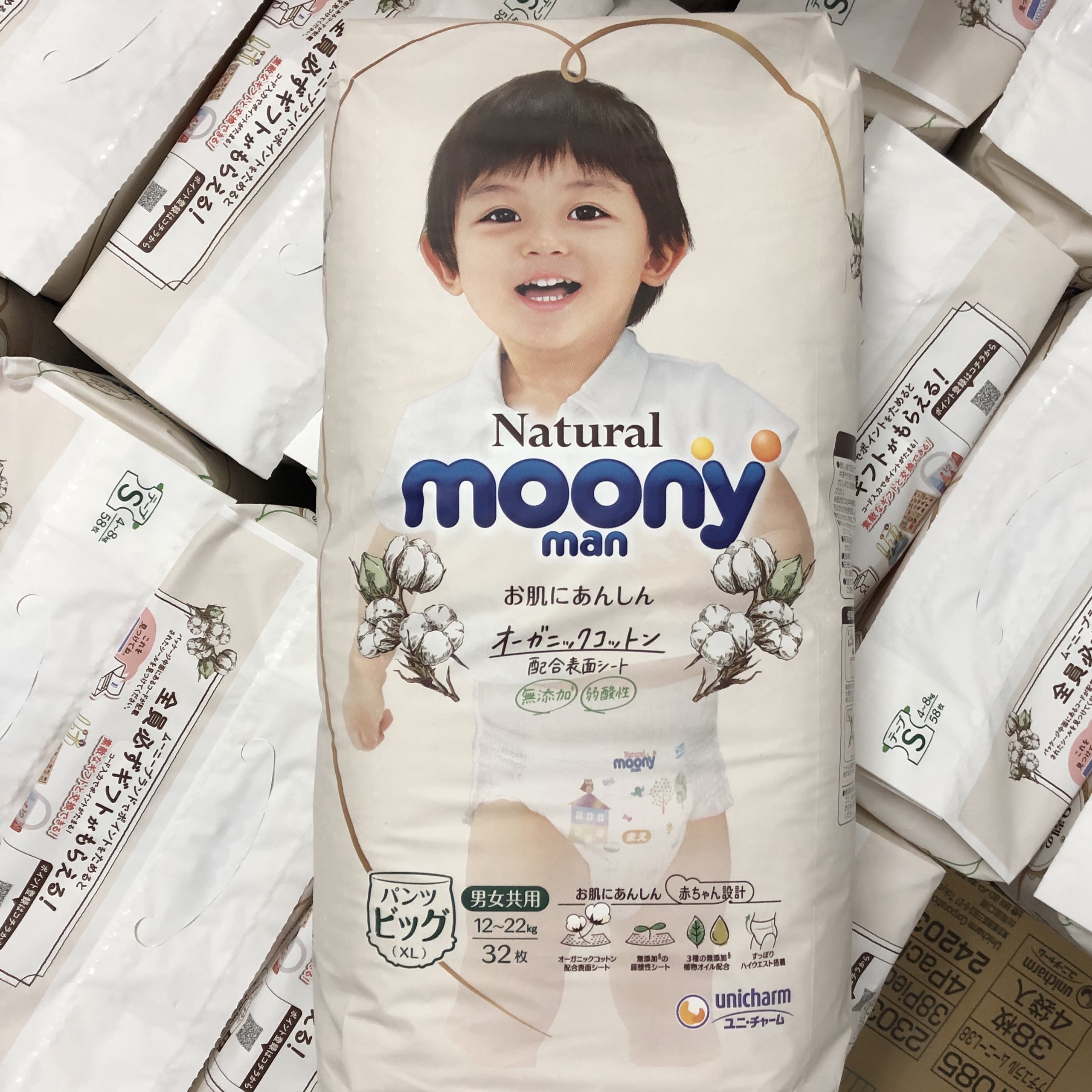 Mua tại TiktokBỉm - Tã quần Moony Natural size XL 32 miếng (12 - 22kg) Giới thiệu Bỉm tã quần moony Natural size XL32 miếng (12 - 22kg) chính là 1 trong những mẫu cải tiến mới với lưng thun che phủ trên eo co giãn linh hoạt để chống tràn hiệu quả, từ đó cho bé sự thoáng mát tối đa. Loại bỏ hoàn toàn vấn đề gây in hằn da khi bé đến giai đoạn chuyển từ bỉm dán sang bỉm quần. Đặc biệt đây là sản phẩm bỉm siêu cao cấp với bề mặt Organic đầu tiên tại Nhật Bản an toàn với làn da non nớt của bé Đặc điểm nổi bật Màng vải lưng thun, co giãn nhẹ như mây