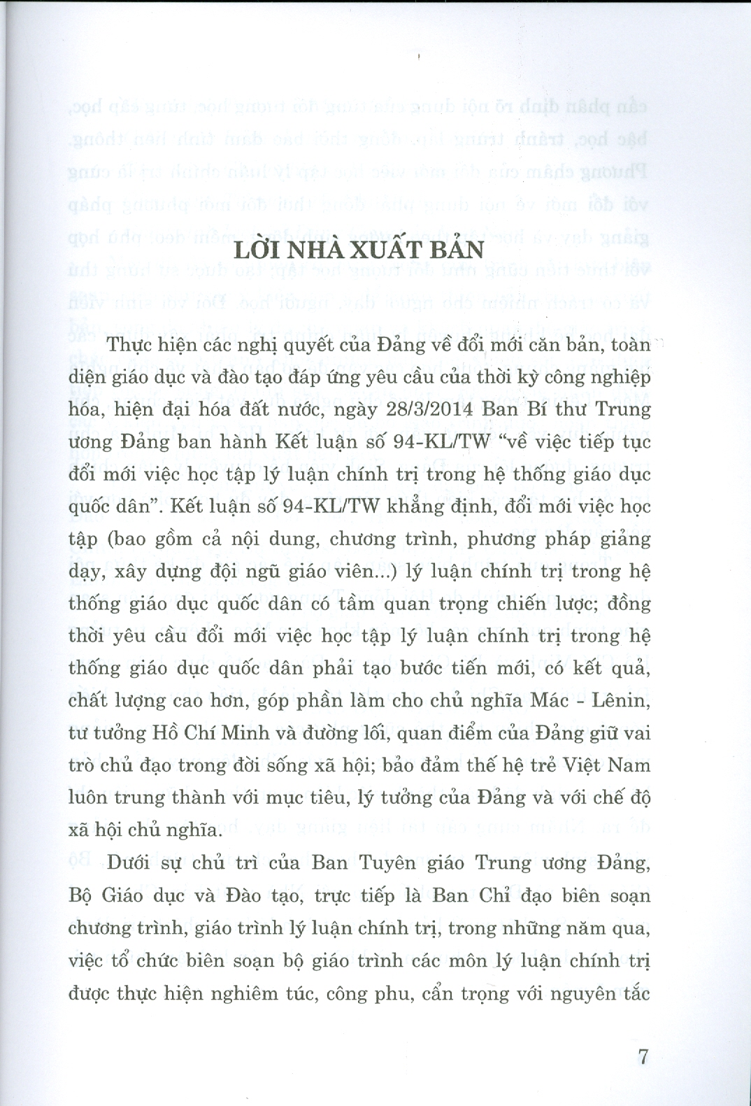Bộ giáo trình lý luận chính trị gồm 5 cuốn dành cho bậc đại học hệ không chuyên lý luận chính trị. Bộ sách là tài liệu giảng dạy, học tập cho giảng viên, sinh