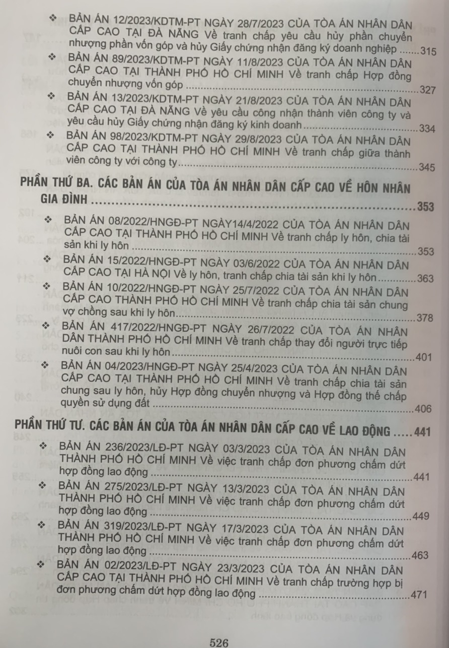 4.Tuyển tập các bản án của Tòa án nhân dân cấp cao về hành chính – kinh doanh thương mại – hôn nhân gia đình – lao động