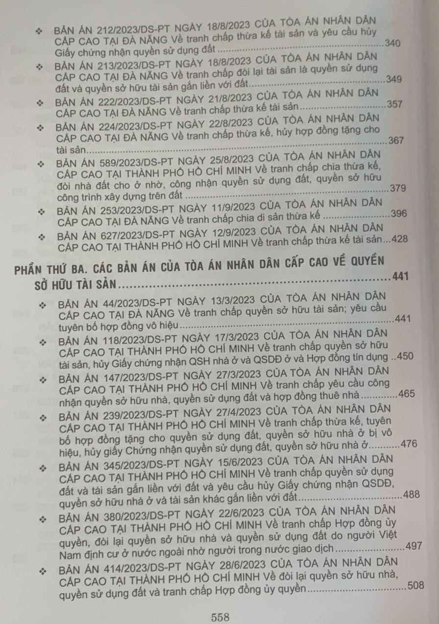 3.Tuyển tập các bản án của Tòa án nhân dân cấp cao về quyền sử dụng đất và tài sản gắn liền với đất