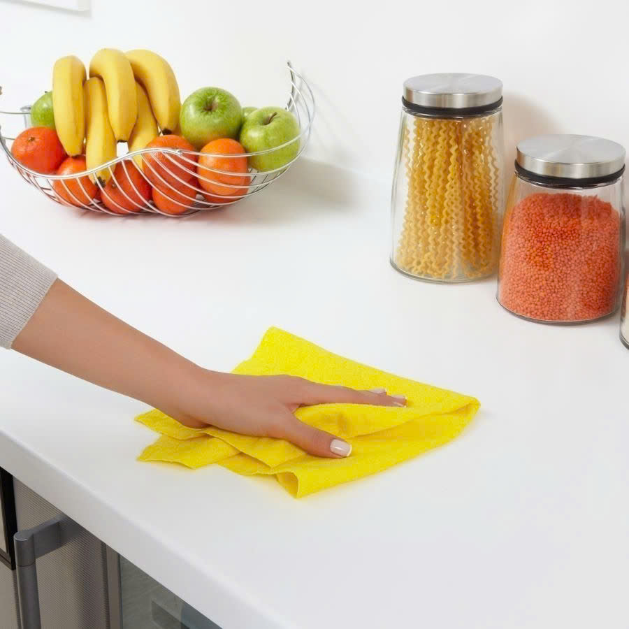 Khăn lau đa năng nhà bếp rất tiện ạh: lau bát đũa, lau mặt bếp, lau dọn tủ... Em muốn nhấn mạnh là chất liệu của loại khăn này - chất liệu Microfiber - nổi