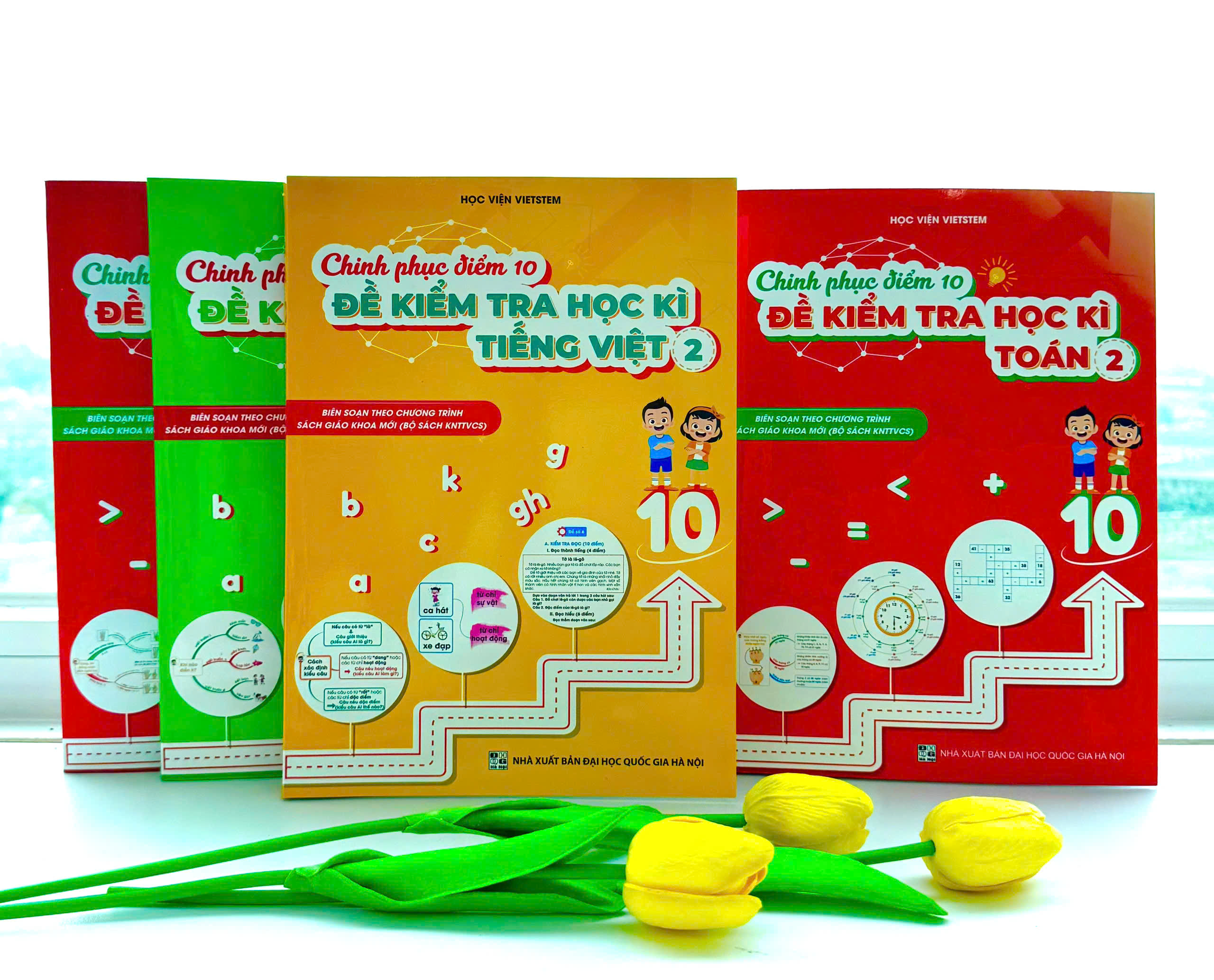 COMBO 4 SÁCH CHINH PHỤC ĐIỂM 10 ĐỀ KIỂM TRA HỌC KÌ TOÁN VÀ TIẾNG VIỆT 1 VÀ 2 (KNTT) **Giới thiệu chung Bộ 4 sách "Chinh Phục Điểm 10 Đề Kiểm Tra Học Kì Toán và Toán, Tiếng Việt 1 và 2 (KNTT)" do Học Viện VIETSTEM biên soạn là một phần trong bộ sách "Chinh Phục Điểm 10 Đề Kiểm Tra Học Kì" dành cho học sinh từ lớp 1 đến lớp 12. Bộ sách này ra đời tập trung giải quyết vấn đề mà hầu hết các phụ huynh đều quan tâm: "Làm thế nào để giúp con nắm chắc kiến thức, đạt kết quả cao trong các bài kiểm tra học kì và thành tích của cả năm học?".