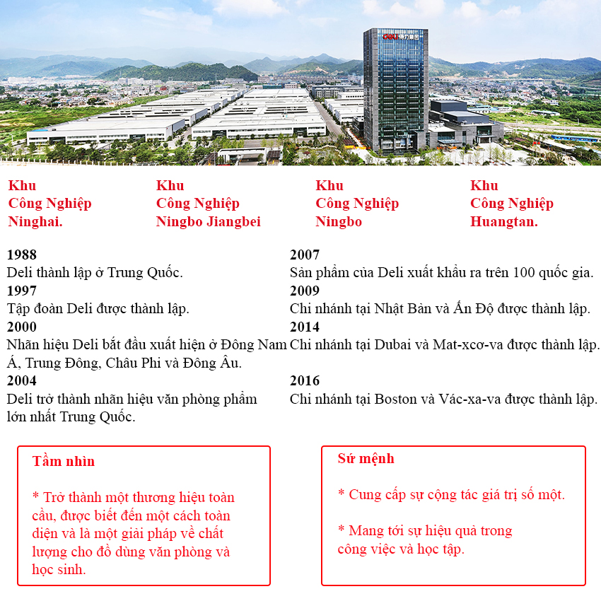 Dẫn đầu về sản xuất: Là nhà sản xuất Văn Phòng Phẩm lớn nhất Châu Á, sức mạnh về sản xuất của Deli luôn đảm bảo sức mạnh sản xuất ổn định.