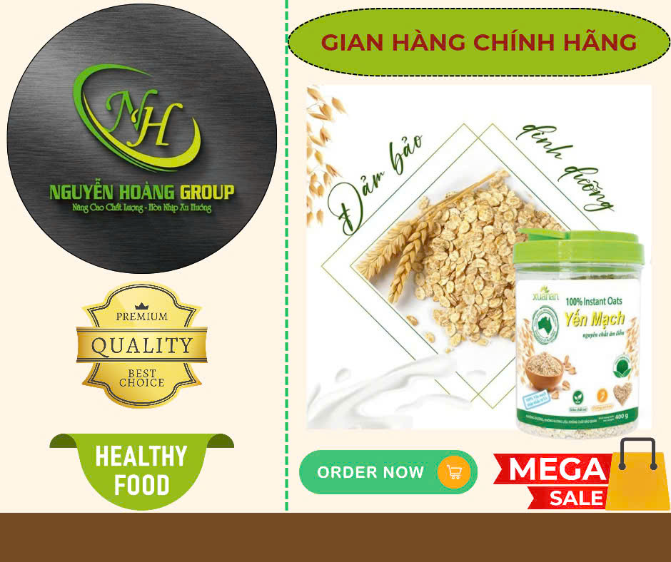 YẾN MẠCH NGUYÊN CHẤT ĂN LIỀN – HỘP 800G Yến mạch là loại ngũ cốc giàu chất xơ, giàu đạm, vitamin và dưỡng chất tự nhiên. 100% Yến mạch nguyên chất Xuân An (Instant Oats)