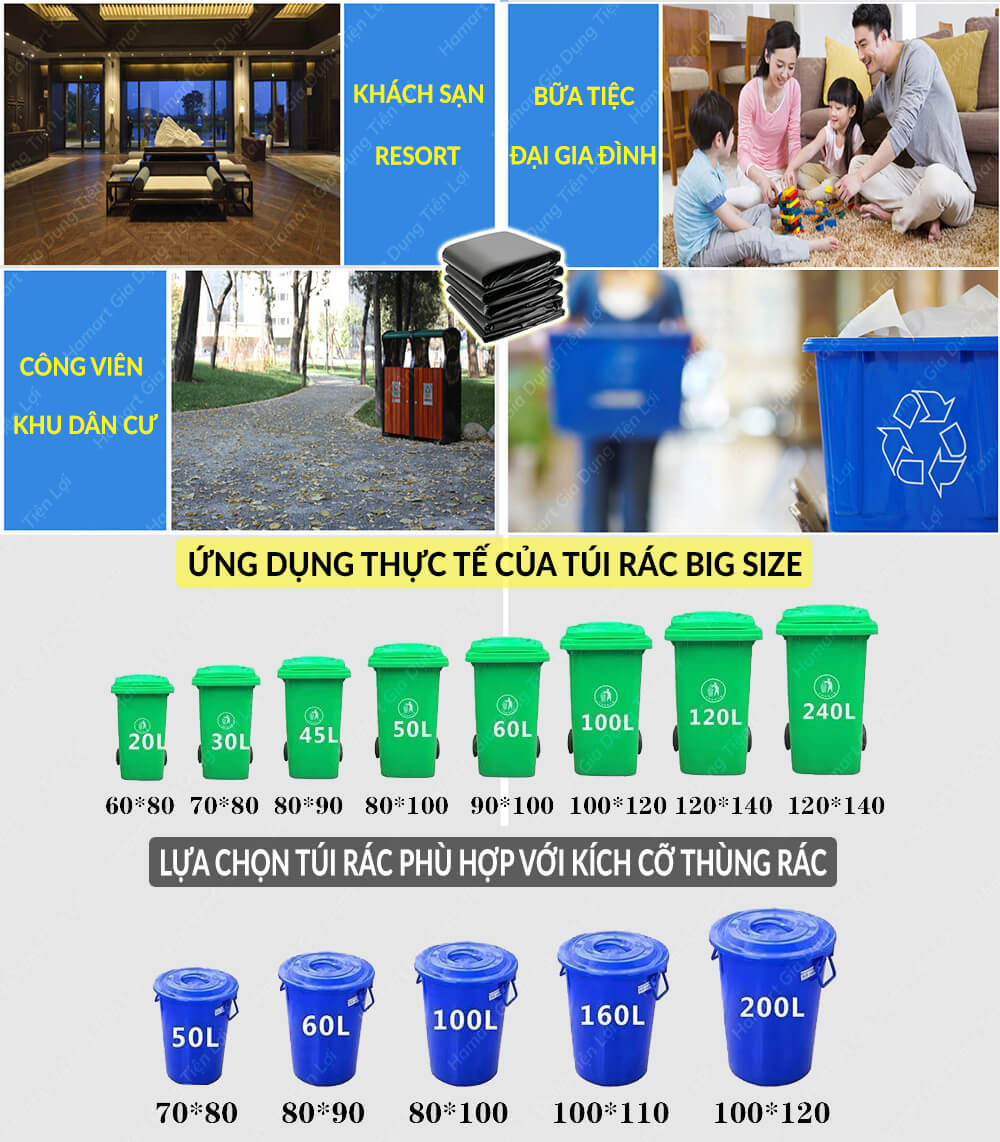 - Túi đựng rác size đại có màu sắc nét, kích thước cực đại phù hợp sử dụng bọc đựng rác số lượng lớn
