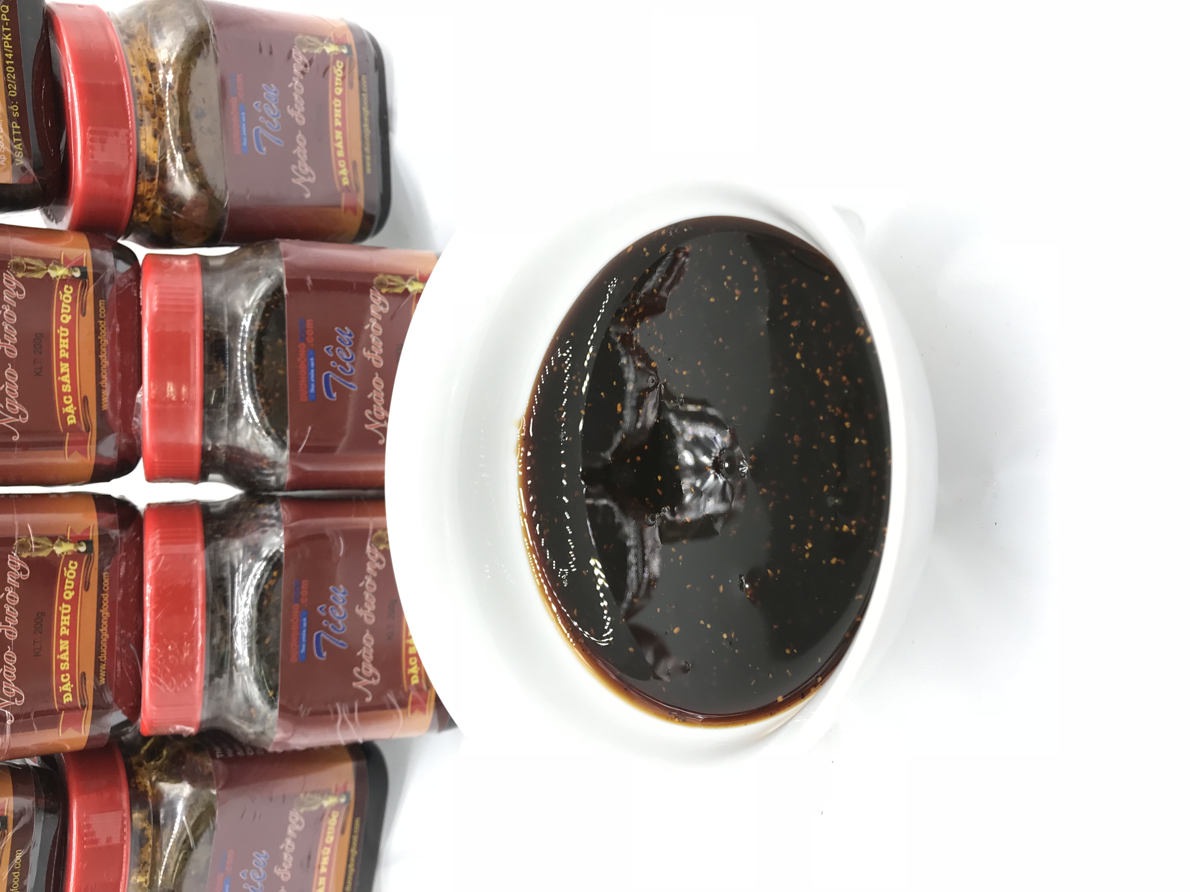 Đặc sản Phú Quốc tiêu ngào đường Dương Đông Food được sản xuất và đóng gói tại đảo Phú Quốc, Kiên Giang, Việt Nam. Tiêu ngào đường thương hiệu Dương Đông Food là sản phẩm chất lượng, dùng kho thịt, cá rất thơm ngon, vị cay của hạt tiêu Phú Quốc hoà quyện với vị đậm đà của nước mắm Phú Quốc tạo ra hương vị thơm ngon đặc trưng riêng của sản phẩm khi dùng để làm món cá kho tộ hay thịt kho tiêu. Sản phẩm tạo sự tiện lợi cho người nấu ăn, không phải mất thời gian cho việc làm nước màu khi kho thịt, cá nữa.   Sản phẩm không sử dụng chất bảo quản. Trọng lượng: hũ 200gram Cách dùng: dùng để kho thịt, cá và chấm các loại rau luộc NSX theo lô- HSD: Sử dụng tốt trước 12 tháng kể từ ngày sản xuất. Cơ sở sản xuất đạt chứng nhận Đủ điều kiện an toàn vệ sinh thực phẩm.