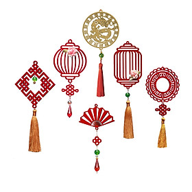 Bộ 05 phụ kiện dây treo Nguyệt hoa đăng đỏ, nổi bật với chất liệu gỗ khắc CNC, điểm xuyến bởi các hạt đỏ. Dây treo được làm thủ công sắc sảo. Là điểm nhấn
