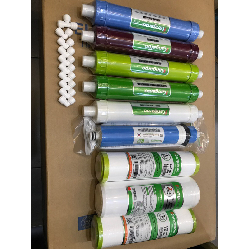 Mua tại Tiktok[Trọn bộ] 9 Lõi Lọc Nước KANGAROO 123456789 - Hàng chính hãng +Dùng thay được cho các máy lọc nước RO THÔNG TIN SẢN PHẨM : +Bộ 9 lõi lọc Gồm : PP 5 MICRON , G.A.C , PP 1 MICRON , Màng Lọc RO , NANO SILVER , CERAMIC , ALKALINE , MAIFAN , ORP. CARTRIDGE Cấu tạo lõi lọc : ++ Lõi lọc số 1 - PP 5 MICRON :