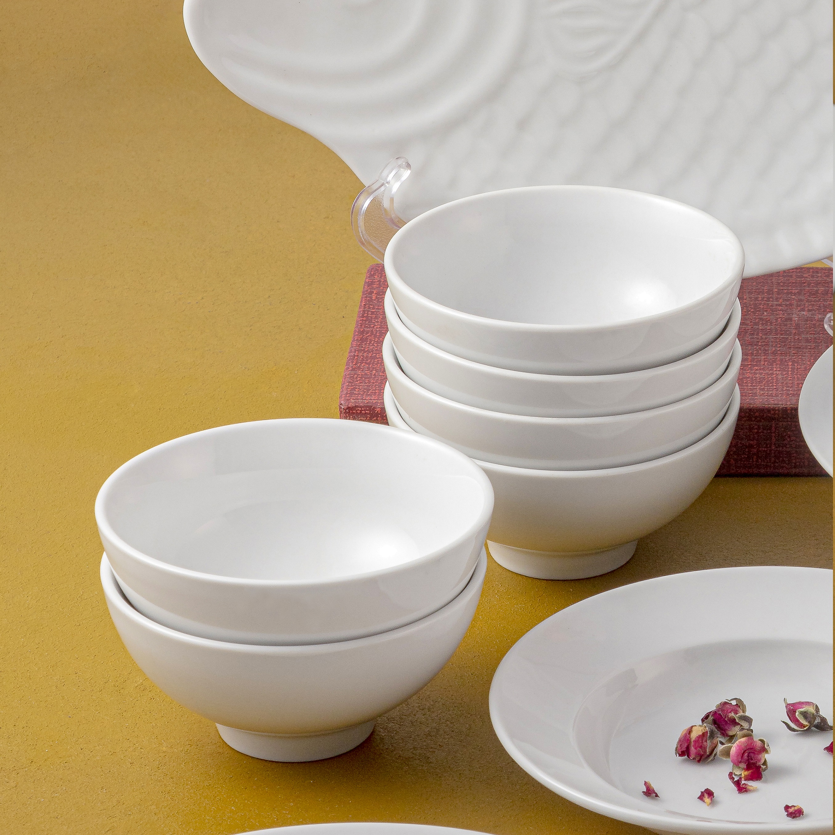 6 ly dung tích 295ml • 6 bát cơm đường kính 15cm • 6 đĩa lót bát đường kính 21cm Màu trắng Set 6 đĩa với 3 kích thước khác nhau • Mã SP: BC154