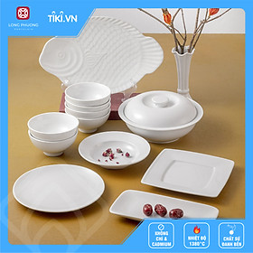 Bộ bát đĩa gốm sứ Bát Tràng cao cấp men trắng 23 chi tiết như hình