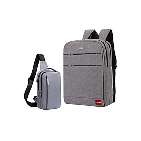 • Bộ sản phẩm bao gồm 1 balo lớn và 1 túi đeo chéo với tông màu xám đơn giản nhưng vẫn không kém phần cuốn hút.