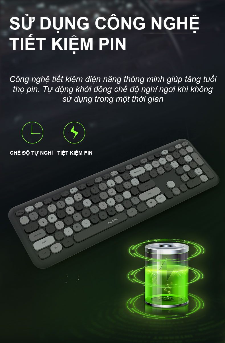 Không dây RF 2.4G: Công nghệ RF 2.4G, phạm vi không dây lên tới 10 mét. Bàn phím thoải mái và yên tĩnh: Bàn phím cấu hình thấp giúp gõ thoải mái. Bàn phím chống tràn: Thiết kế