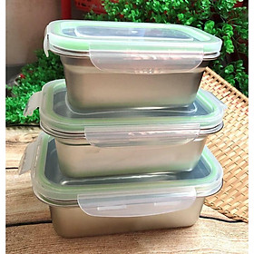 COMBO Bộ 3 Hộp BẢO QUẢN thực phẩm INOX 304 có NẮP. DỤng cụ đựng chứa trữ ĐA NĂNG trong tủ lạnh AN TOÀN SỨC KHOẺ