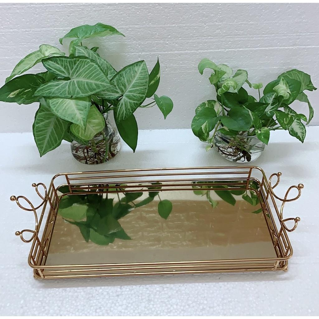 - Bộ combo Gồm 1 bình thủy tinh & 6 cốc thủy tinh + 1 khay inox tráng gương mạ vàng hình vương miện + 1 gía úp cốc kim loại mạ vàng. 2 - Bộ combo Gồm 1 bình thủy tinh & 6 cốc thủy tinh + 1 khay inox tráng gương mạ vàng hình vương miện. 3 - Bình đựng nước uống thủy tinh đáy vuông 1800ml. 4 – Khay khay inox tráng gương mạ vàng hình vương miện: 50x20,5x5cm 6 - Giá úp đầu hươu kim loại mạ vàng 7 – Bình đựng nước bầu 8 – Bộ 6 cốc 9 - Giá úp cốc thường