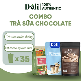 ✨Combo Bột Sữa Cao Cấp 1kg+ Hồng trà Déli 400gr+ Bột cacao Déli 1kg, nguyên liệu pha chế trà sữa Chocolate