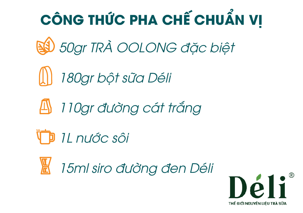 Mua tại TiktokĐậm vị trà, thơm nhẹ nhàng đặc trưng , thơm nhưng không bị chát khiến ai uống cũng thích. Trà sữa Ô Long đường đen ngọt lịm, ngất ngay, uống là ghiền, là một trong những món trà sữa hút khách của nhiều thương hiệu nổi tiếng. Combo gồm : +Bột pha trà sữa cao cấp ( túi 1KG , HSD : 12 tháng ) +Trà Olong đặc biệt ( túi 500GR , HSD : 24 tháng ) +Siro đường đen ( chai 1LIT , HSD : 12 tháng )