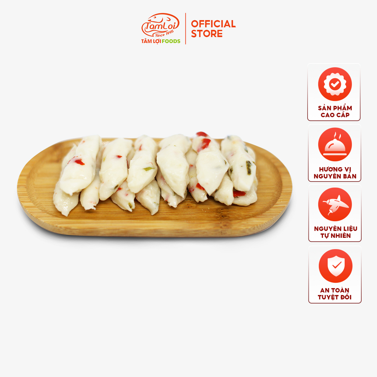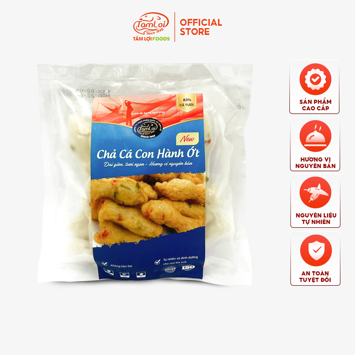 • Chả cá con hành ớt Tâm Lợi được làm từ thịt cá basa tươi 83,78%, đây là sự kết hợp giữa chả cá dai mềm cùng với vị hành ớt cay thơm đặc trưng đầy lôi cuốn. Chả cá con hành ớt được chết biến từ nguồn nguyên liệu được chọn lọc kĩ càng mang đến chất lượng và những trải nghiệm tốt nhất cho khách hàng.