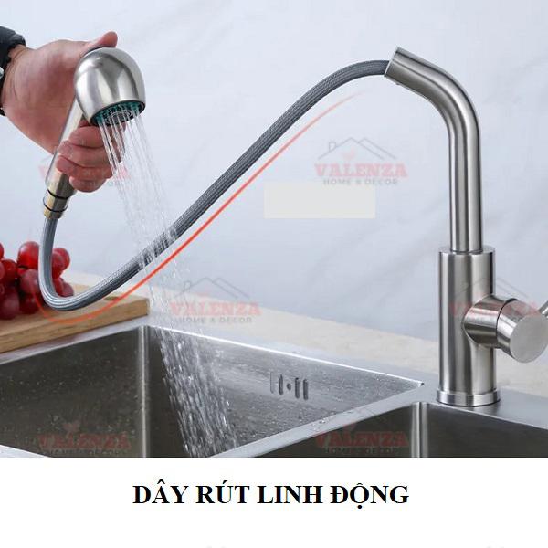****Vòi rửa bát rút dây nóng lạnh 02 sus304