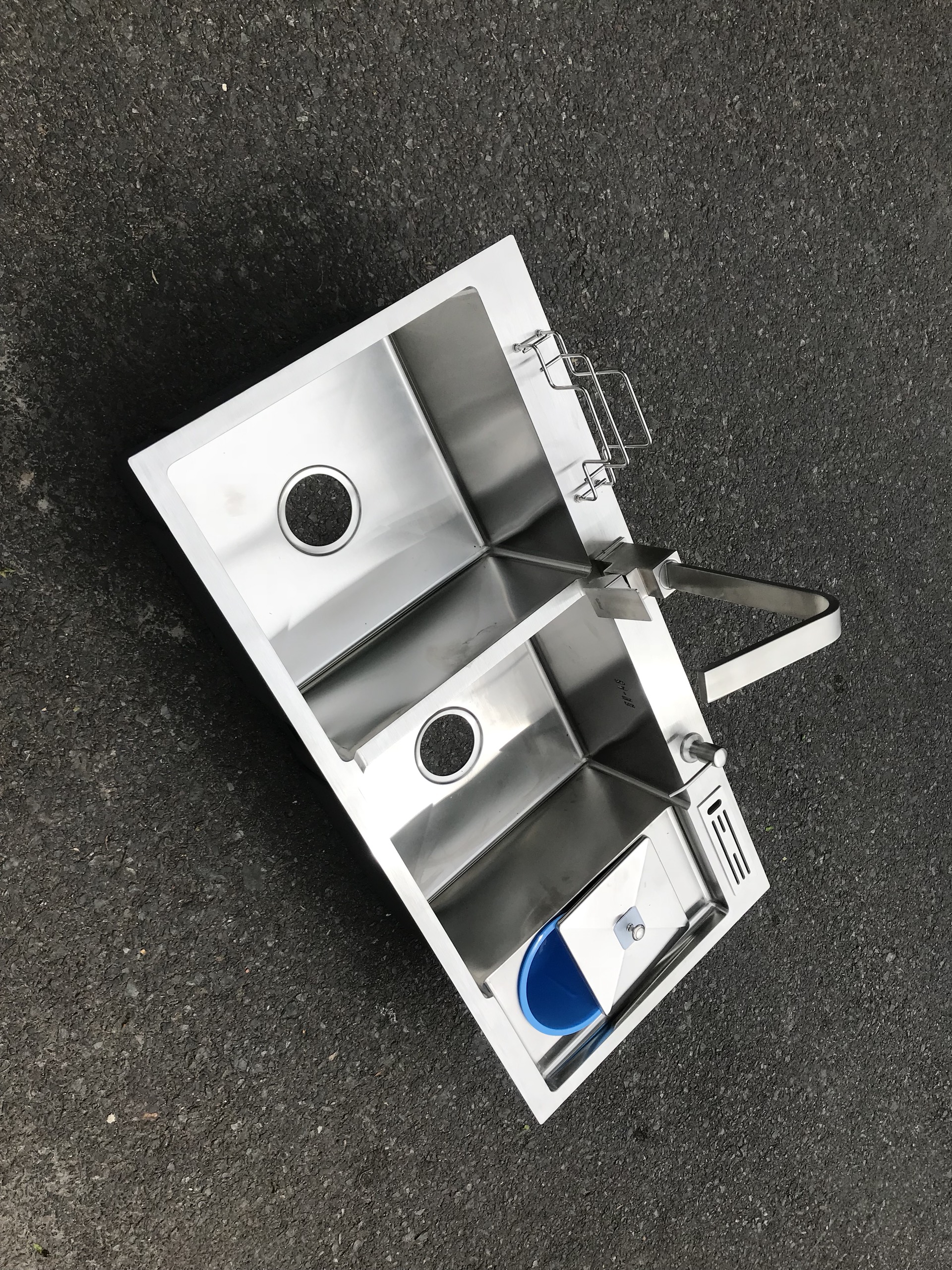 + Xi phông: Được thiết kế 02 lớp bên trong bằng Inox Sus 304, bên ngoài được bảo vệ bằng lớp nhựa HDPE  nhằm tăng độ bền cao nhất. Xi phông của chậu rửa Inox có tính năng Chống bốc ngược mùi do được thiết kế khoa học, kết cấu đặc biệt nhất hiện nay.