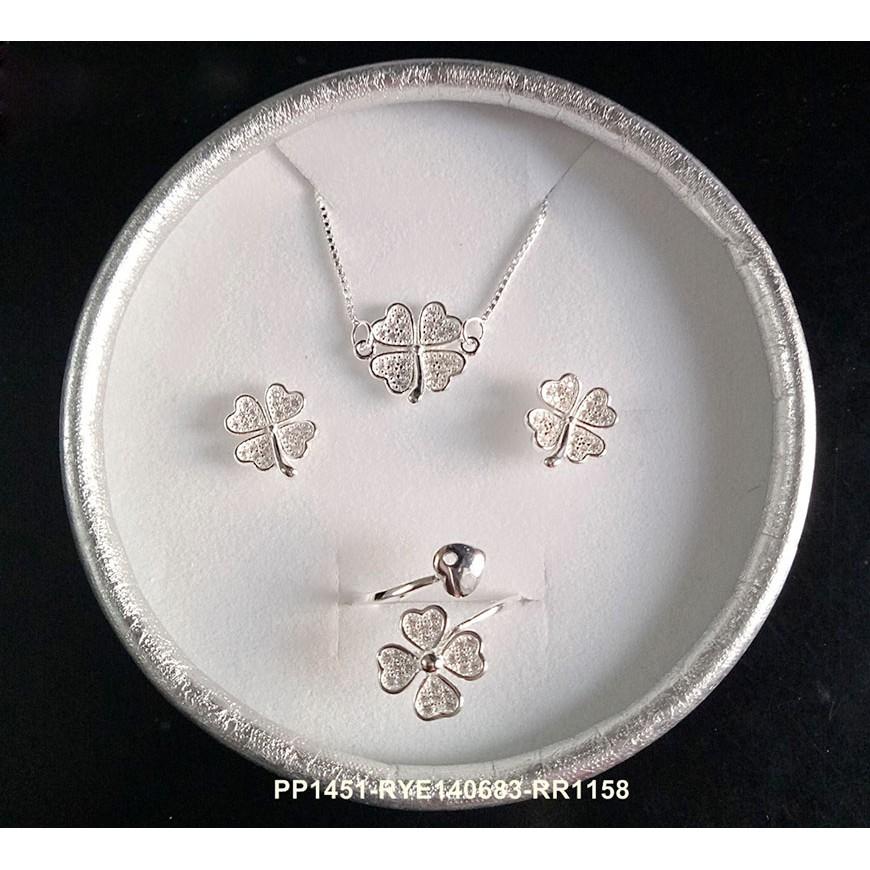 Giá bao gồm: dây chuyền kèm mặt (PP1451) và bông tai (RYE140863) và nhẫn (RR1158)