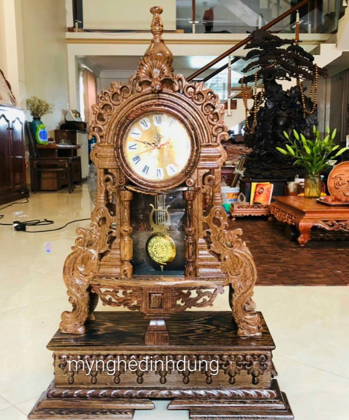 ✨Combo đồng hồ quả lắc để bàn kt cao 70x45x15cm + kệ chân đế 15x52x29cm bằng gỗ mun đuôi công
