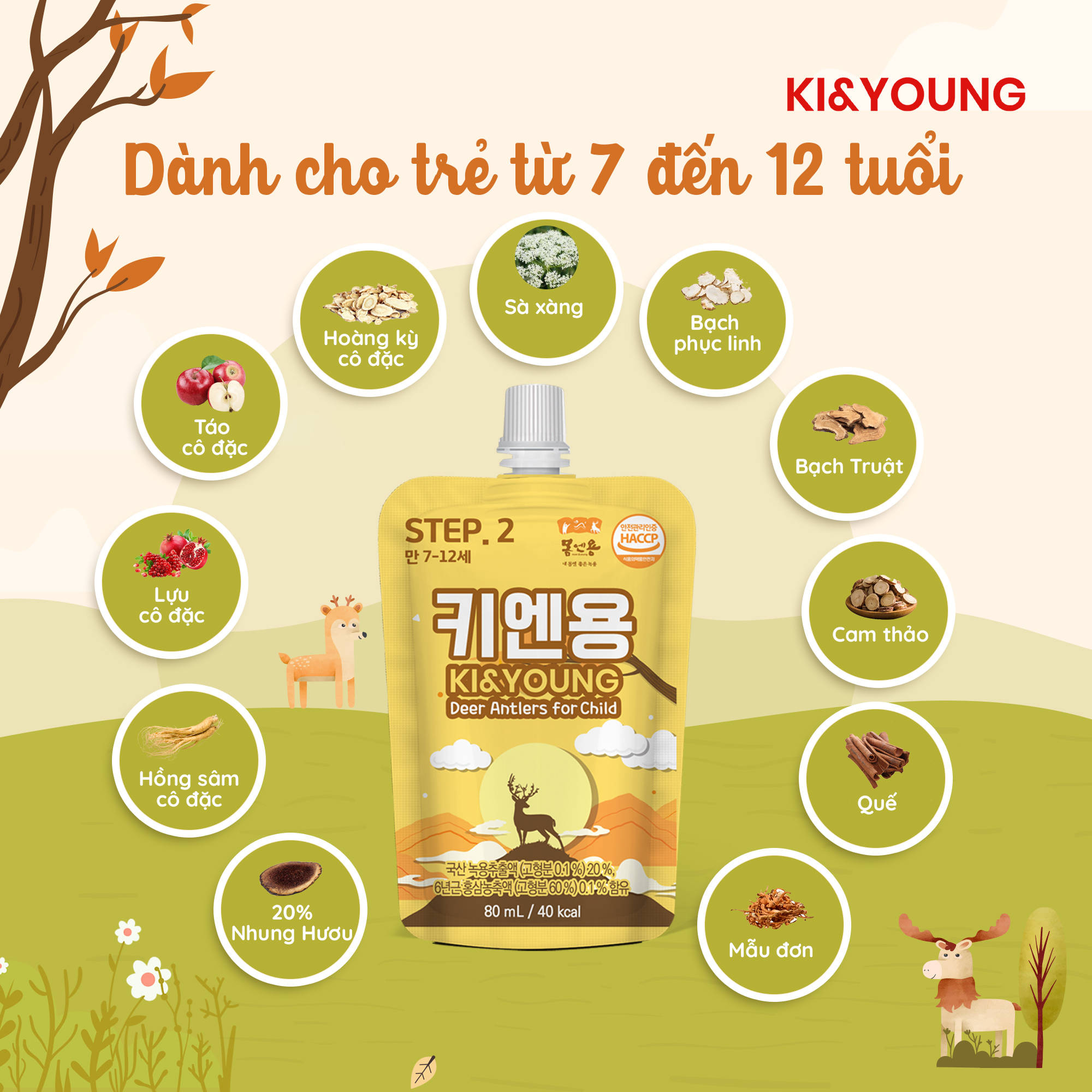 Tên sản phẩm: Gạc hươu non/Nước nhung hươu cho bé Ki&Young.