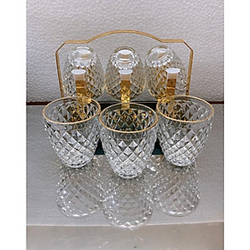 Chất liệu: thủy tinh Bộ sản phẩm gồm: 6 cốc thủy viền vàng VÀ GIÁ ÚP CỐC THEO HÌNH Thiết kế đẹp mắt, phù hợp tiện dụng Độ bền cao, chịu nhiệt tốt, hạn chế