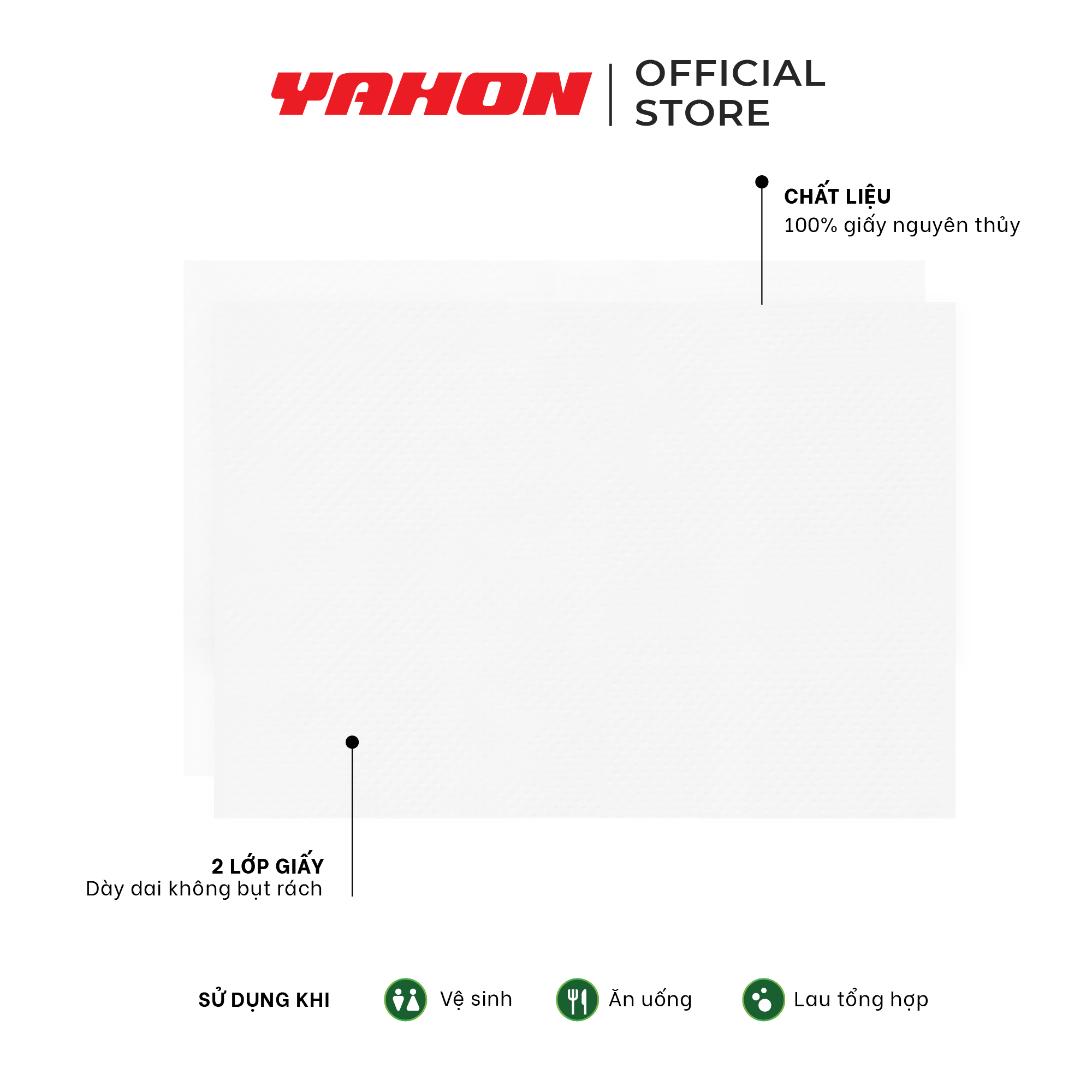 à sản phẩm cao cấp của công ty giấy Mylan Thành phần chính 100% bột giấy nguyên thủy Quy cách đóng gói: 10 cuộn/dây, 3 lớp Kích thước mỗi tờ giấy:100mm x 100mm ± 4mm