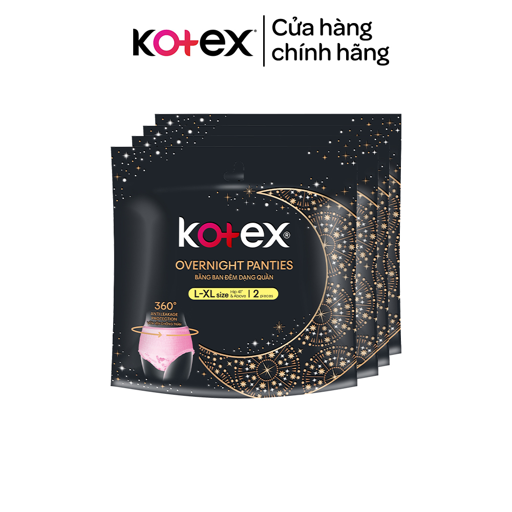 Băng ban đêm dạng quần đột phá MỚI với thiết kế vừa vặn và chống tràn 360 độ cho bạn cảm giác an toàn và thoải mái suốt đêm. THÔNG TIN SẢN PHẨM Kotex Băng