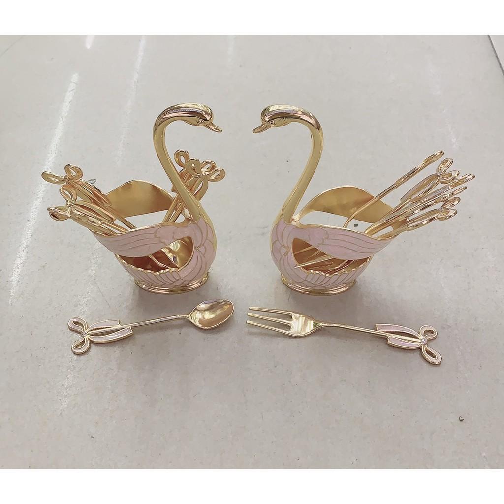 Sản phẩm bao gồm 1 thiên nga đính 2 viên đá Sawaski + 6 thìa hoặc nĩa Chất liệu: Hợp kim Bảo hành màu: 5 năm An toàn sức khỏe
