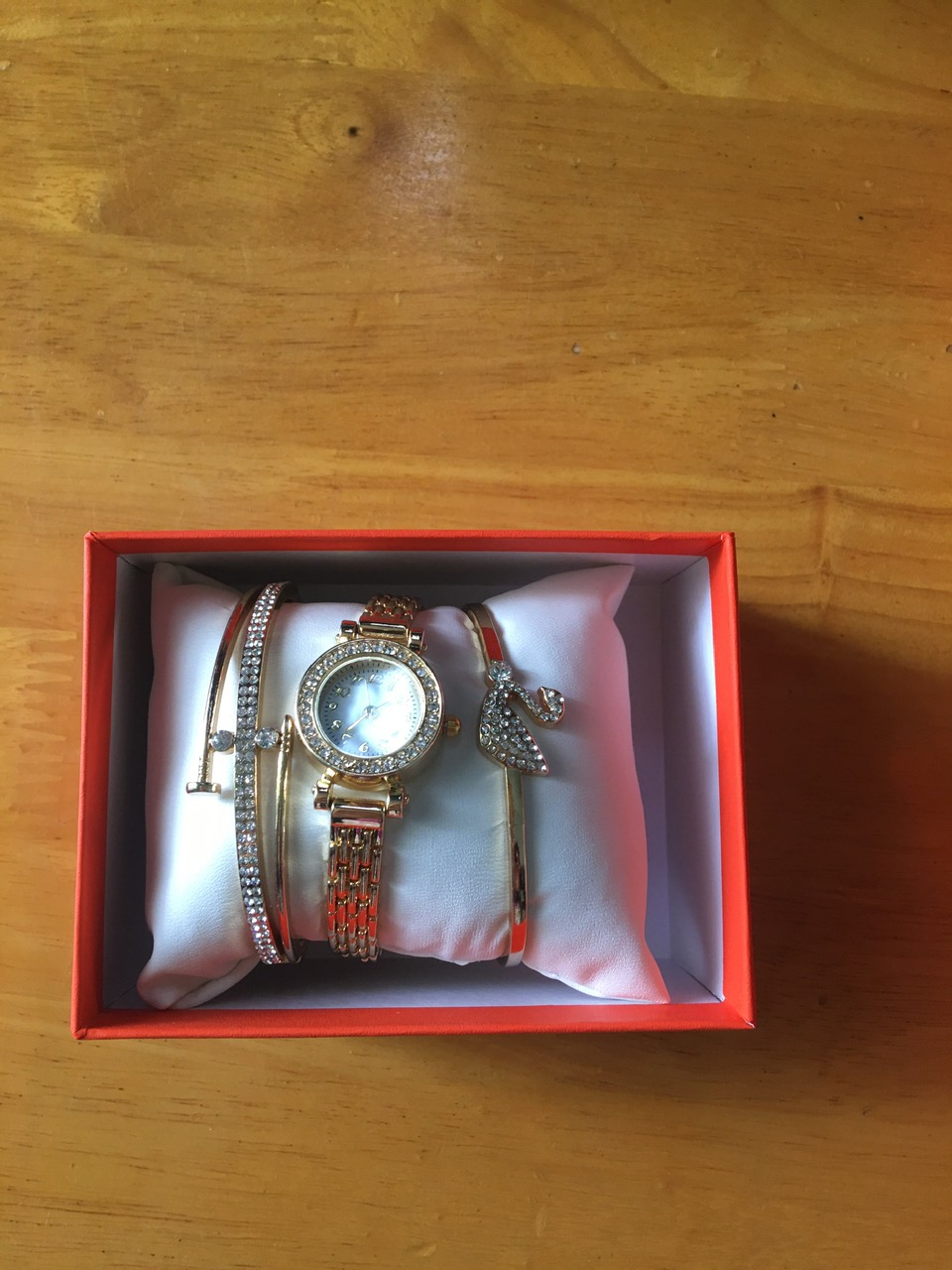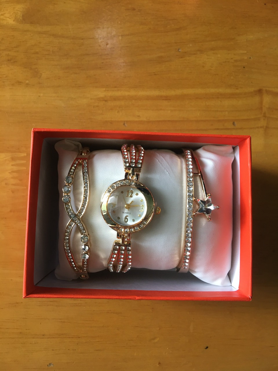 _Combo hộp 3 món đeo tay xinh xắn phong cách thanh lịch thời trang sang trọng quý phái cho nữ -Combo hộp đồng hồ 3 món đeo tay xinh xắn , mặt tròn màu trơn