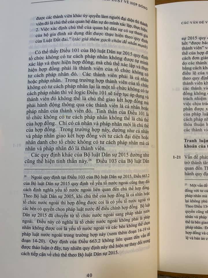 - Pháp Luật Về Hợp Đồng Các Vấn Đề Pháp Lý Cơ Bản (tái bản lần 1, 2024) LS. Trương Nhật Quang Năm xuất bản 2024 Phiên bản 2st Edition Loại bìa Bìa mềm Số trang 900 ISBN: 9786044026060 Nhà phát hành : NXB Dân Trí Giá bìa: 800.000 đ Nội dung sách: Đây là cuốn sách đầy đủ nhất liên quan đến pháp luật về hợp đồng. Trải dài trong gần 900 trang, cuốn sách phân tích các vấn đề liên quan đến (i) giao kết hợp đồng; (ii) hiệu lực hợp đồng; (iii) nội dung hợp đồng; (iv) vi phạm hợp đồng và biện pháp khắc phục; (v) miễn trừ trách nhiệm; (vi) chuyển giao quyền và nghĩa vụ; (vii) quyền của bên thứ ba trong hợp đồng vì lợi ích của bên thứ ba; và (viii) nguyên tắc chọn pháp luật áp dụng và cơ quan giải quyết tranh chấp hợp đồng. Đây là cuốn sách duy nhất trình bày các vấn đề liên quan đến pháp luật về hợp đồng cả từ góc độ lý thuyết và thực tế. Ngoài việc phân tích các quy định của các văn bản pháp luật, cuốn sách cũng phân tích các án lệ và bản án. Đây là cuốn sách giúp các luật sư hành nghề có thể tham khảo khi tư vấn trong các giao dịch thương mại có yếu tố nước ngoài. Cuốn sách tập trung phân tích phạm vi mà các bên có thể thỏa thuận trong hợp đồng để phân bố rủi ro. Đây là cuốn sách duy nhất có hệ thống tra cứu đầy đủ giúp người đọc tiện tra cứu. Cuốn sách có (i) bảng tra cứu từ khóa; (ii) bảng tra cứu án lệ, bản án và quyết định; và (iii) danh sách các tài liệu trích dẫn.