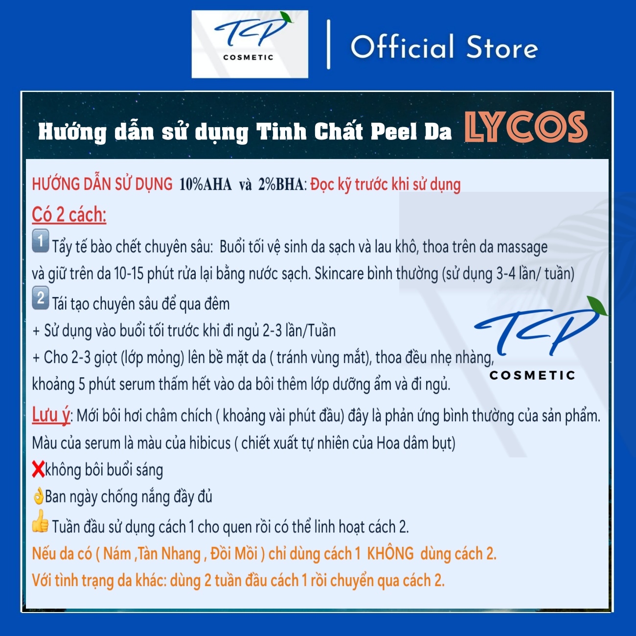 - Tinh chất peeling Lycos Face Peeling Solution With 10% Aha – 2% Bha Lycos