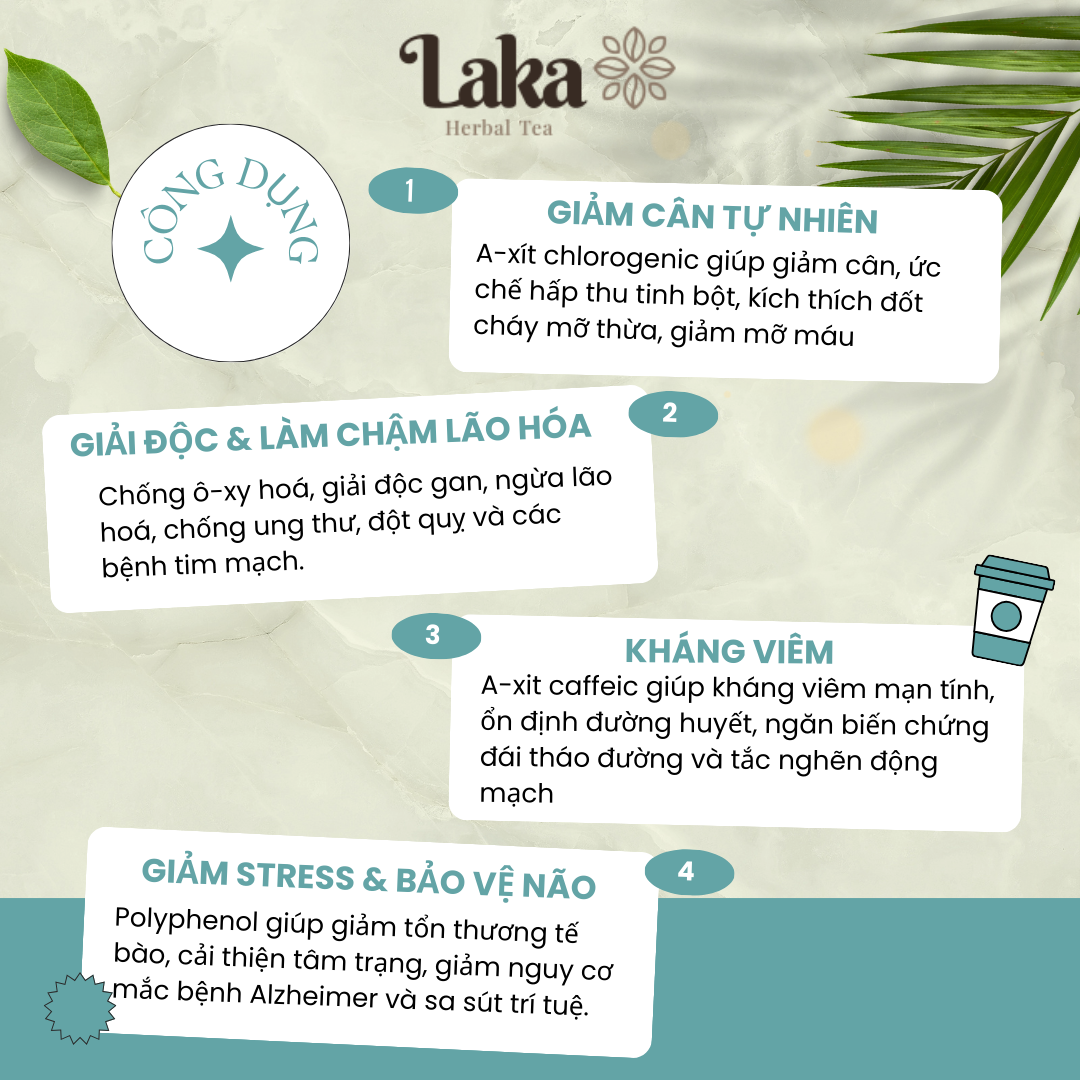 - Giải độc gan, viêm gan; Giúp ngủ ngon, thanh lọc cơ thể - Phòng ngừa, kiểm soát lượng đường trong máu - Cải thiện sức khỏe cho đường ruột, dạ dày - Hạ Cholesterol,
