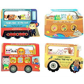 Bộ sách này gồm 4 cuốn: Bus Stop - Bến Xe Buýt , Happy Farm - Nông Trại Vui Vẻ , Boat Trip - Đi Tàu Thủy , Train Ride - Đi Tàu Hỏa. " Chúng Mình Cùng Lên Đường Nào : mỗi cuốn sách kể về một loại xe với đặc tính riêng, nhân cách hóa như người.