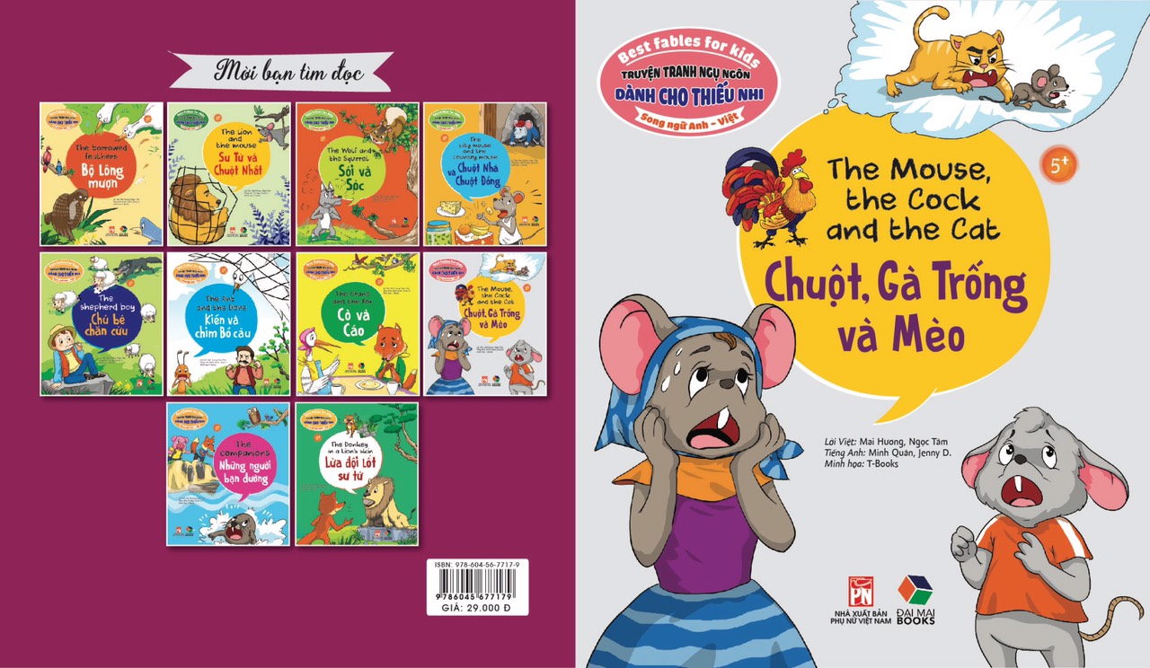 Combo Truyện tranh ngụ ngôn dành cho thiếu nhi song ngữ Anh - Việt ( Bộ 4 cuốn bộ lông mượn + sư tử và chuột nhắt+ cò và cáo + chuột , gà trống và mèo