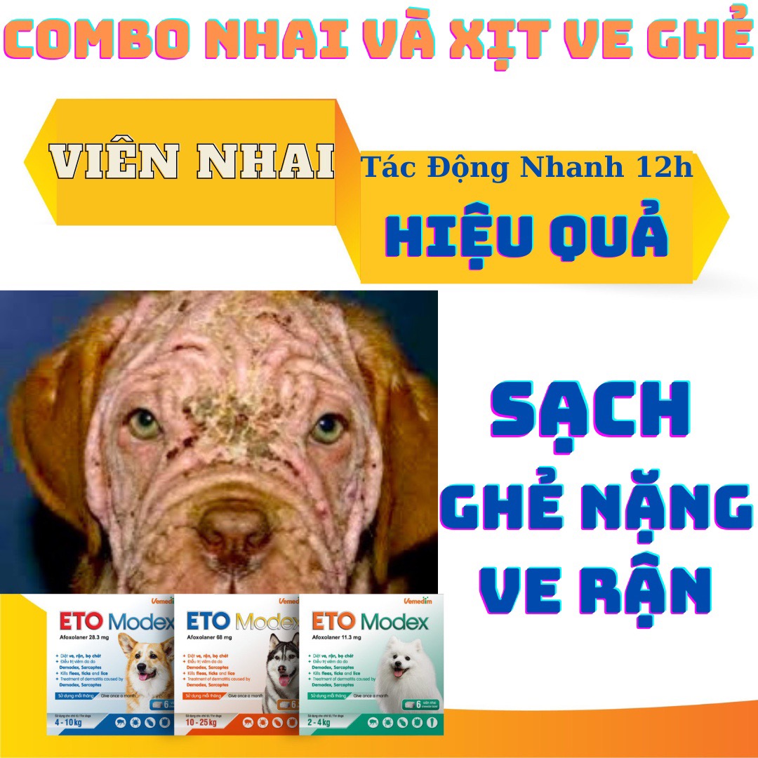 ✨COMBO Viên ETO MODEX Sạch Ve, Ghẻ, Và Chai Xịt Nấm Ghẻ Nặng Thảo Dược Cho Chó Mèo, An Toàn Cho Thú Cưng