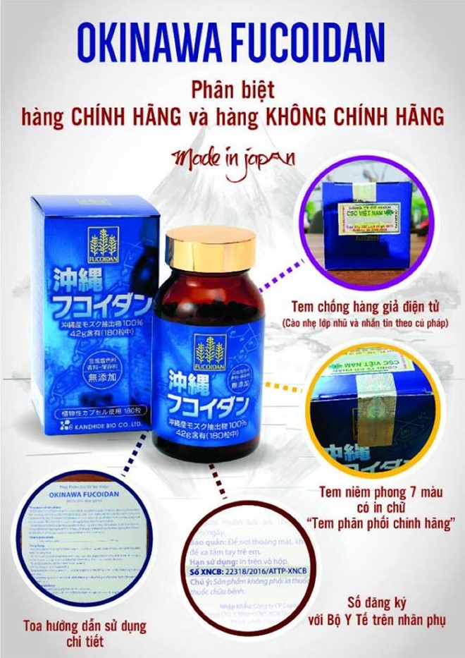 - Điều hòa và bồi bổ cơ thể. Kéo dài tuổi thọ. Fucoidan Okinawa giúp phòng ngừa và hỗ trợ điều trị ung thư, tăng cường hệ miễn dịch, phòng chống di căn, thúc đẩy chu trình tự chết của tế bào ung thư, tăng cường sức đề kháng, bồi bổ cơ thể. Okinawa Fucoidan có thành phần chính từ nguyên liệu chất lượng cao rong nâu Mozuku tại vùng biển Okinawa, Nhật Bản. Sau quá trình chiết xuất, Fucoidan tiếp tục được chiết tách theo trọng lượng phân tử thông qua quá trình siêu lọc để đạt độ tinh khiết cao, giúp phát huy tác dụng của Fucoidan đạt hiệu quả cao nhất. THÀNH PHẦN: