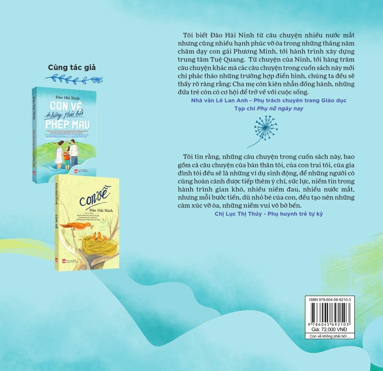 Bộ sách 2 cuốn Con về và Con về không phải phép màu là những cuốn sách được ghi lại từ trải nghiệm của chính người trong cuộc là cha mẹ có con tự kỷ – Đào Hải Ninh và những người bạn đồng hành.