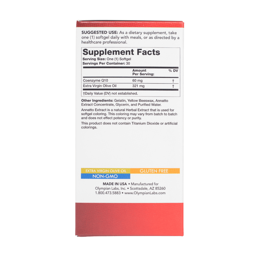 - Extra Virgin Olive Oil……………… 321mg. CoQ10 60mg là sản phẩm được sản xuất từ 100% thành phần tự nhiên, tuyệt đối an toàn cho người sử dụng. Bên cạnh đó, sản phẩm này còn đáp ứng được các tiêu chuẩn khắt khe nhất tại thị trường Mỹ như: