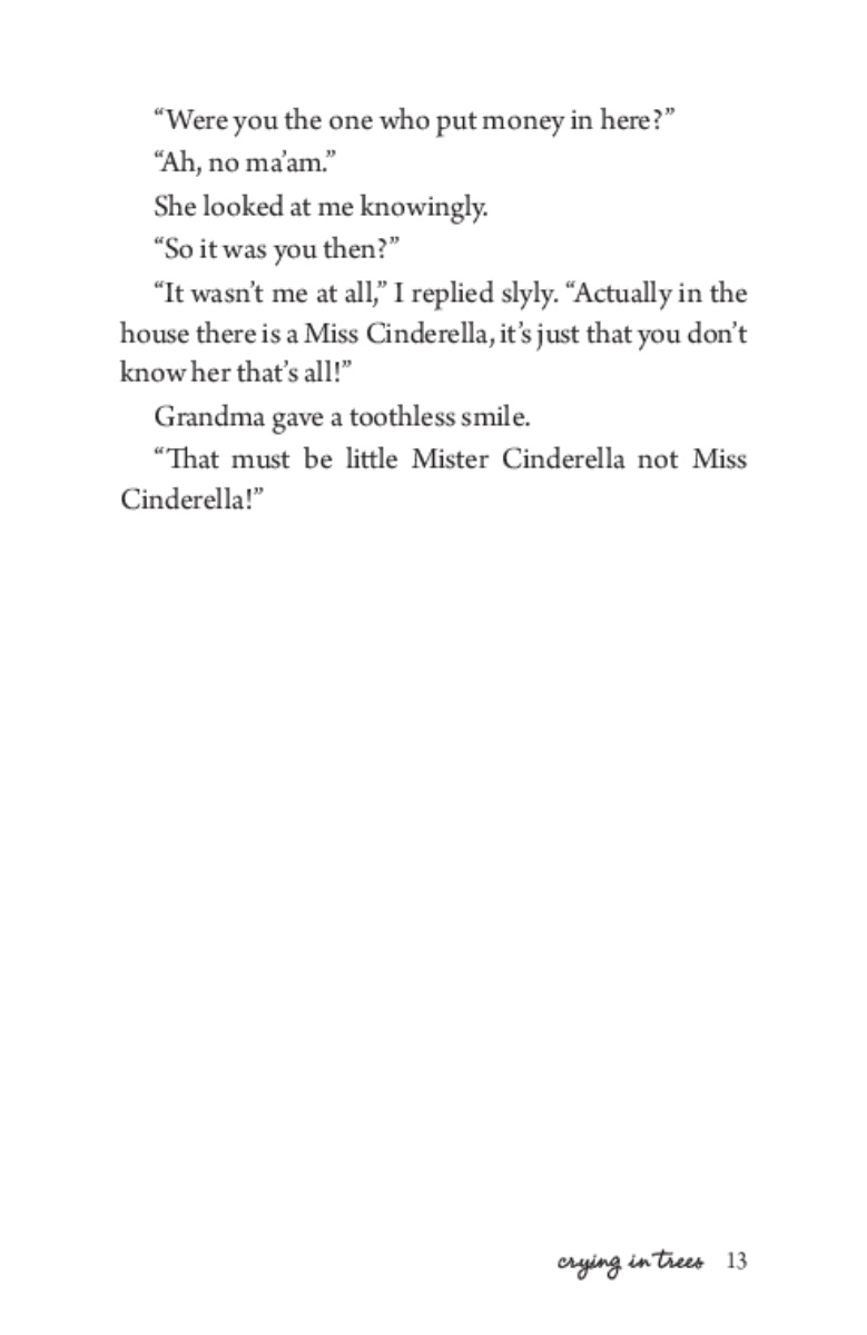 Đây là bản tiếng Anh "Ngồi khóc trên cây" của nhà văn Nguyễn Nhật Ánh. Tác giả sẽ dẫn bạn đi liền một mạch trong một thứ cảm xúc rưng rưng của tình yêu thương. Bạn sẽ thấy may mắn vì đang được sống trong cuộc sống này, thấy yêu thế những tấm lòng.