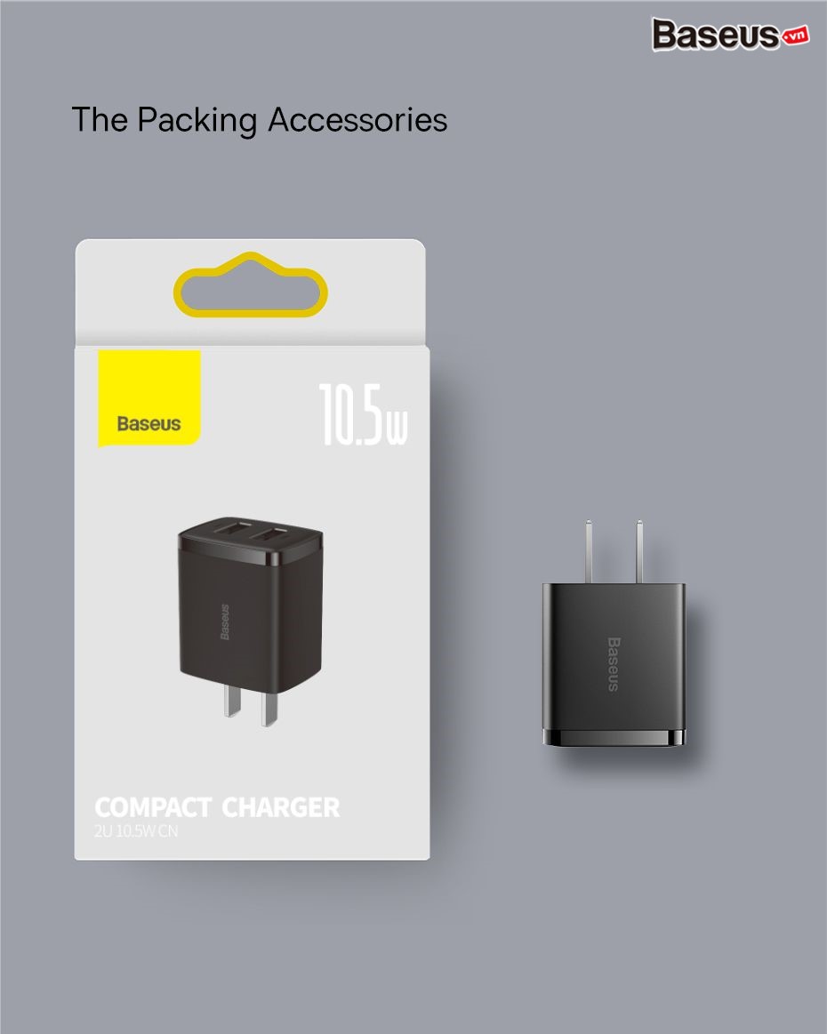 Giới thiệu Củ sạc đa năng 2 cổng USB A 10.5w Baseus Compact Charger- CCXJ Trọng lượng nhẹ và di động Bộ sạc nhanh Baseus Compact hoàn hảo cả ở nhà và khi đi du lịch.