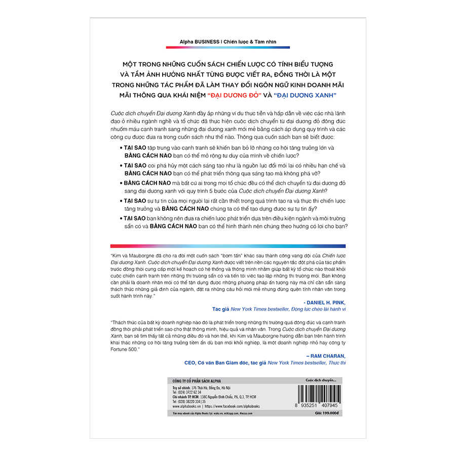 Nếu Chiến lược đại dương xanh đã gợi cho các nhà quản trị hướng đi sáng tạo, đổi mới cho sự phát triển thì Cuộc dịch chuyển đại dương xanh sẽ giúp họ cụ thể hóa trong từng ngành, từng lĩnh vực khác nhau. Trên con tàu chuyển dịch đại dương, đoàn thủy thủ phải đặt hết con tim và khối óc cùng với những công cụ tạo lập thị trường mới để lèo lái con thuyền từ đại dương đỏ sang đến đại dương xanh. Cần phải có lộ trình thay đổi nhận thức, chuyển hóa thành hành động và đồng tâm hiệp lực của mọi tổ chức để thực hiện thành công chuyển dịch đại dương xanh.