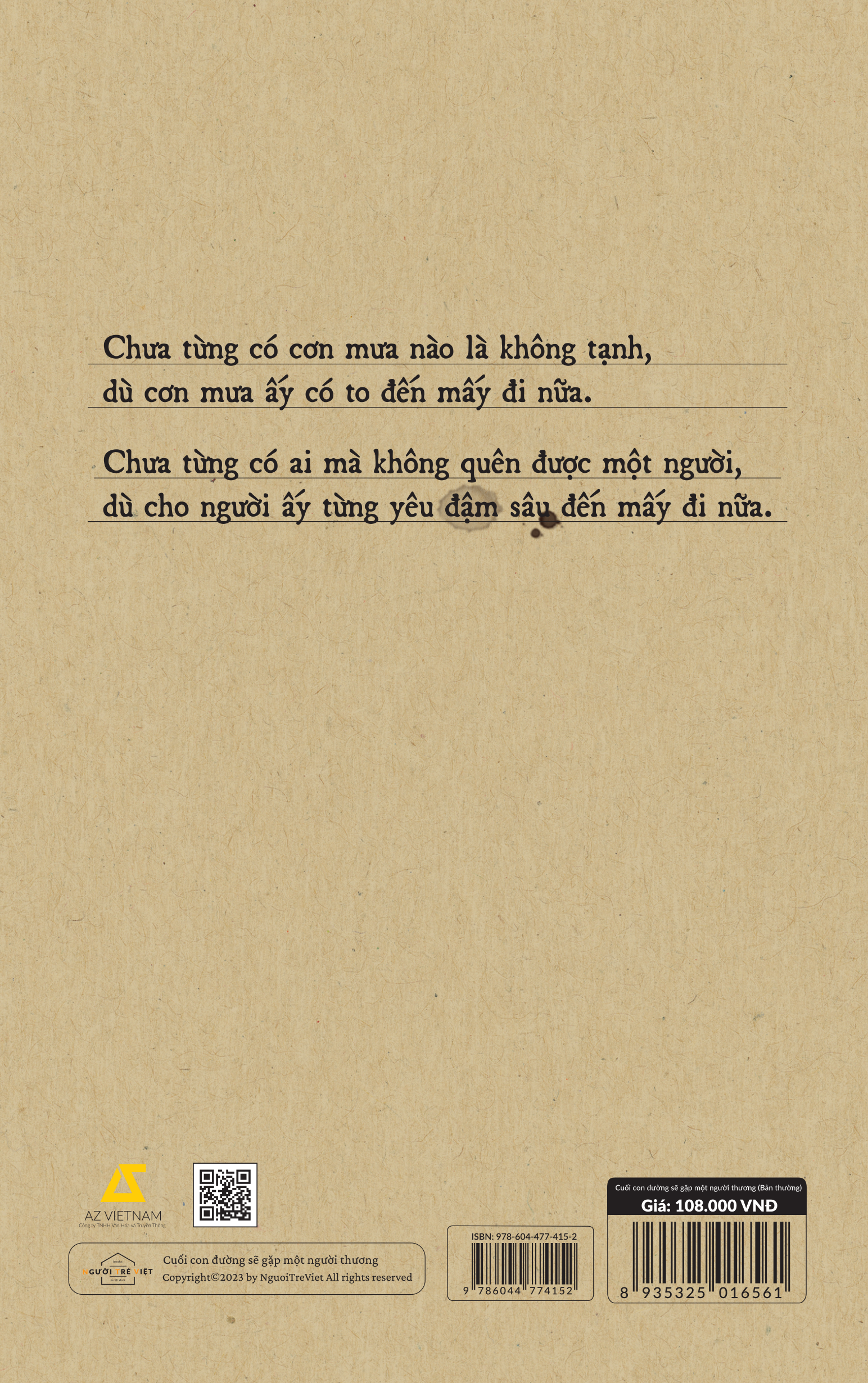 “Cuối con đường sẽ gặp một người thương” Trí vẫn viết về những câu chuyện tình yêu, về những lần chia tay, về những mối tình đậm sâu nhưng bất thành. Nhưng bạn sẽ không còn thấy sự tan vỡ đến đau lòng nát dạ hay khóc cạn một dòng sông như trước đây nữa. Mà bạn sẽ cảm thấy, sau những cuộc tình ấy, chính là sự chấp nhận buông bỏ đến nhẹ bẫng hay mỉm cười rời đi một cách bình thản nhất.