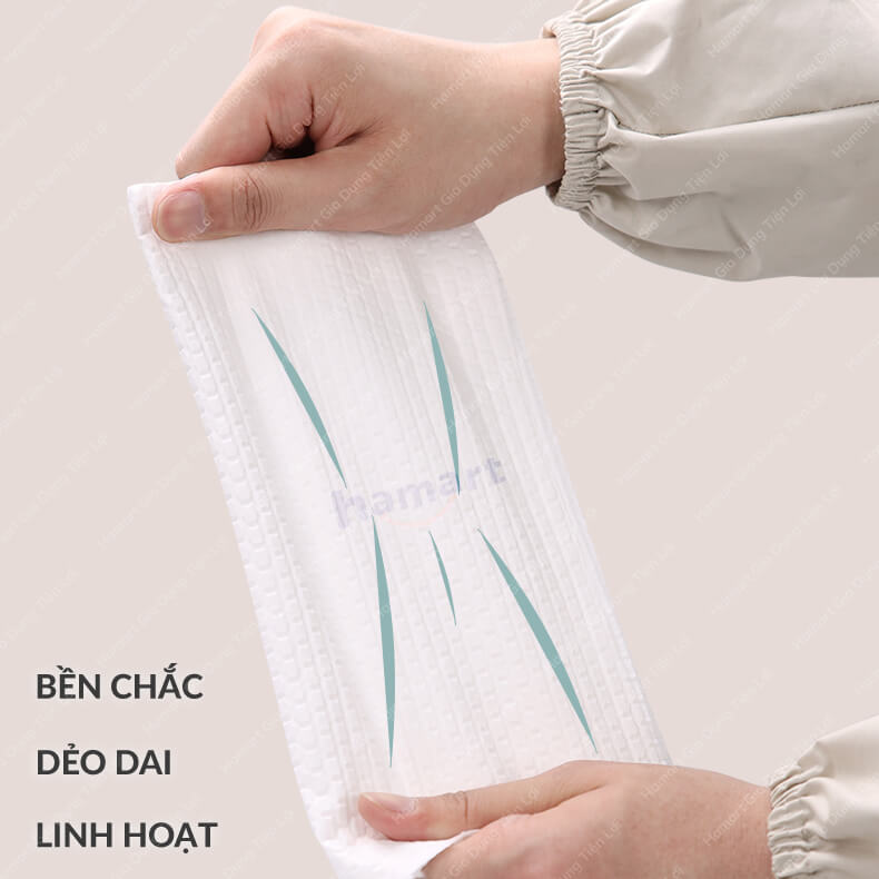 Kích thước: 7.5x20 cm/ 1 cuộn. Số lượng: 50 cái/ 1 cuộn Kích thước 1 Tấm: 20 x 30 cm Chất liệu: vải không dệt Màu sắc: Giao hàng màu ngẫu nhiên. Trọng lượng: 600