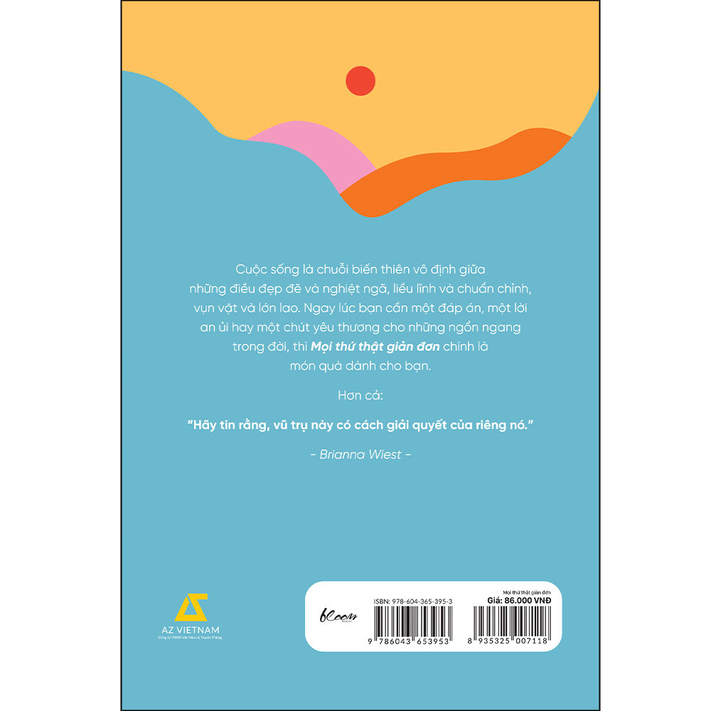 Cuộc sống là chuỗi biến thiên vô định giữa những điều đẹp đẽ và nghiệt ngã, liều lĩnh và chuẩn chỉnh, vụn vặt và lớn lao. Ngay lúc bạn cần một đáp án, một lời an ủi hay một chút yêu thương cho những ngổn ngang trong đời, thì Mọi thứ thật giản đơn chính là món quà dành cho bạn. Hơn cả: “Hãy tin rằng, vũ trụ này có cách giải quyết của riêng nó.”