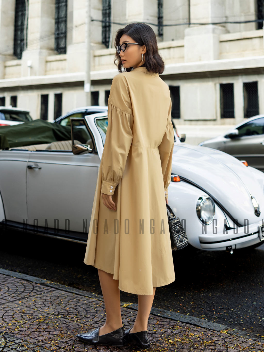 ✨Đầm sơ mi nâu dài tay NGADO , đầm nữ , Đầm suông , Đầm phom rộng nữ thiết kế